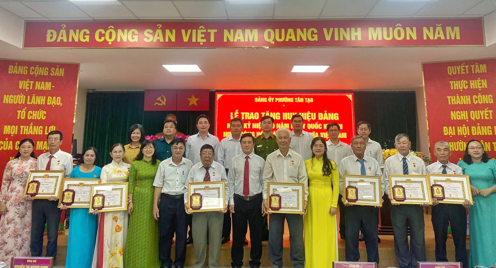 Đợt này, phường Tân Tạo có 10 đảng viên vinh dự được nhận Huy hiệu Đảng; trong đó có 02 đồng chí nhận Huy hiệu 60 năm tuổi Đảng, 01 đồng chí nhận Huy hiệu 55 năm tuổi Đảng, 01 đồng chí nhận Huy hiệu 45 năm tuổi Đảng; 02 đồng chí nhận Huy hiệu 40 năm tuổi Đảng; 04 đồng chí nhận Huy hiệu 30 năm tuổi Đảng.