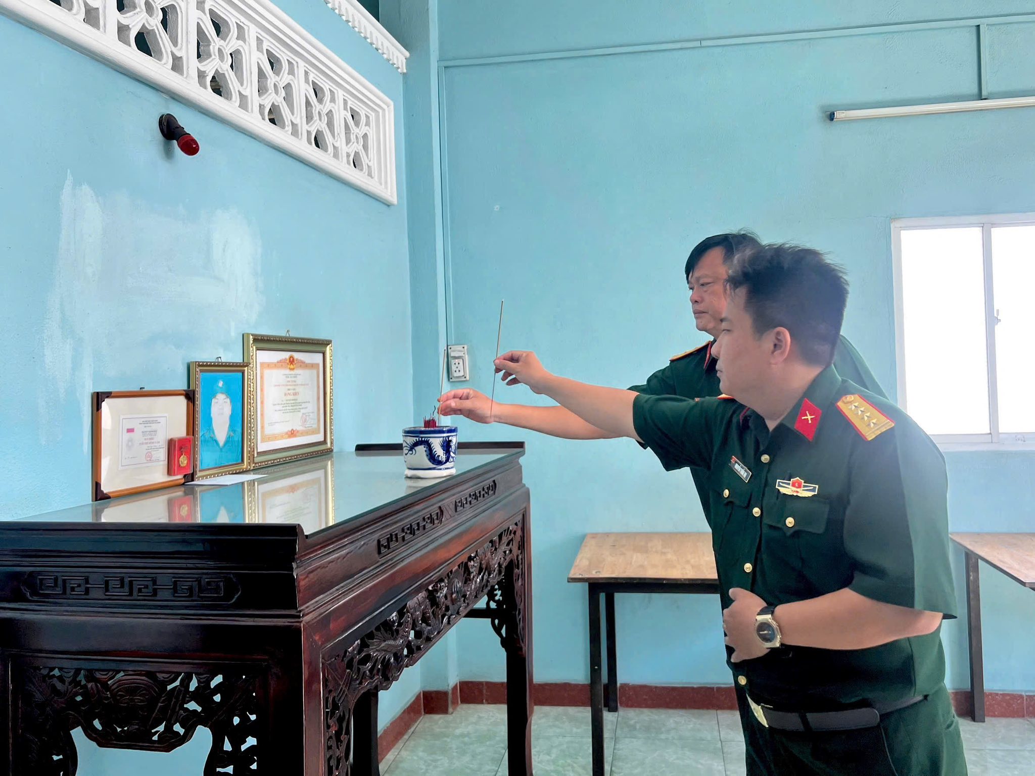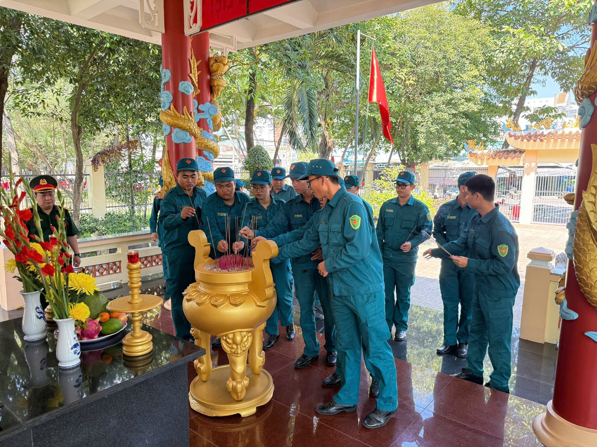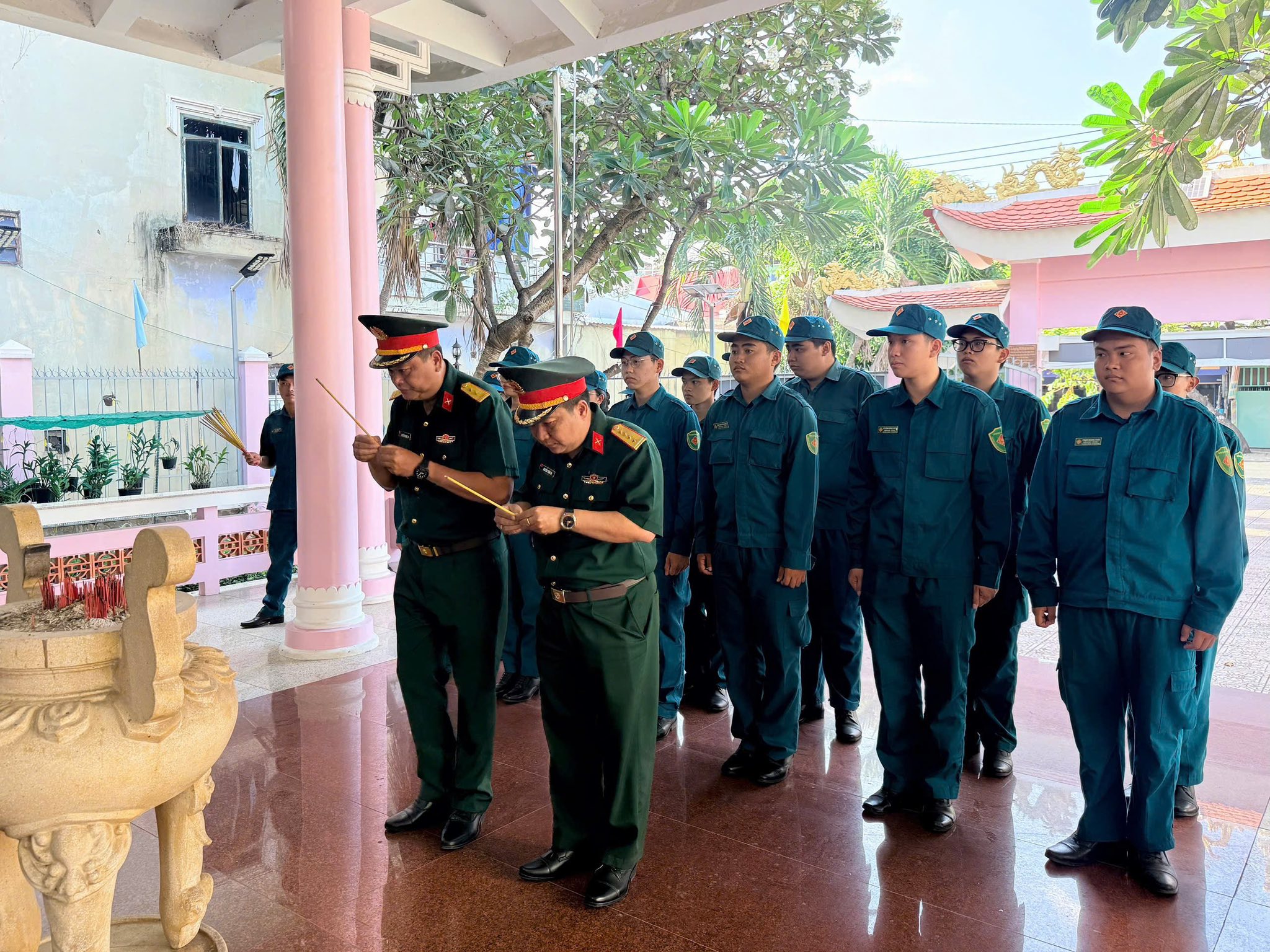 Trước anh linh các anh hùng liệt sĩ, cán bộ, chiến sĩ đã thành kính dành phút mặc niệm, bày tỏ lòng tri ân sâu sắc đối với những hy sinh to lớn vì nền độc lập dân tộc. Đây là dịp ý nghĩa để mỗi chiến sĩ “sao vuông” bồi đắp niềm tự hào, nâng cao tinh thần trách nhiệm trong sự nghiệp xây dựng và bảo vệ Tổ quốc.