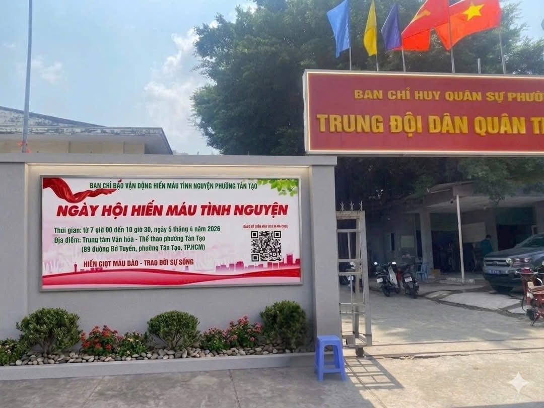 Thực hiện Kế hoạch số 89-KH-BCĐ ngày 23/3/2016 của Ban Chỉ đạo vận động hiến máu tình nguyện phường, đồng thời hưởng ứng Ngày toàn dân hiến máu 07/4, sáng ngày 05/4/2026, tại Trung tâm Văn hóa – Thể thao phường Tân Tạo, Ban Vận động hiến máu tình nguyện phường đã phối hợp cùng Trung tâm Hiến máu Nhân đạo TP. Hồ Chí Minh tổ chức Ngày hội hiến máu tình nguyện đợt 2 năm 2026.