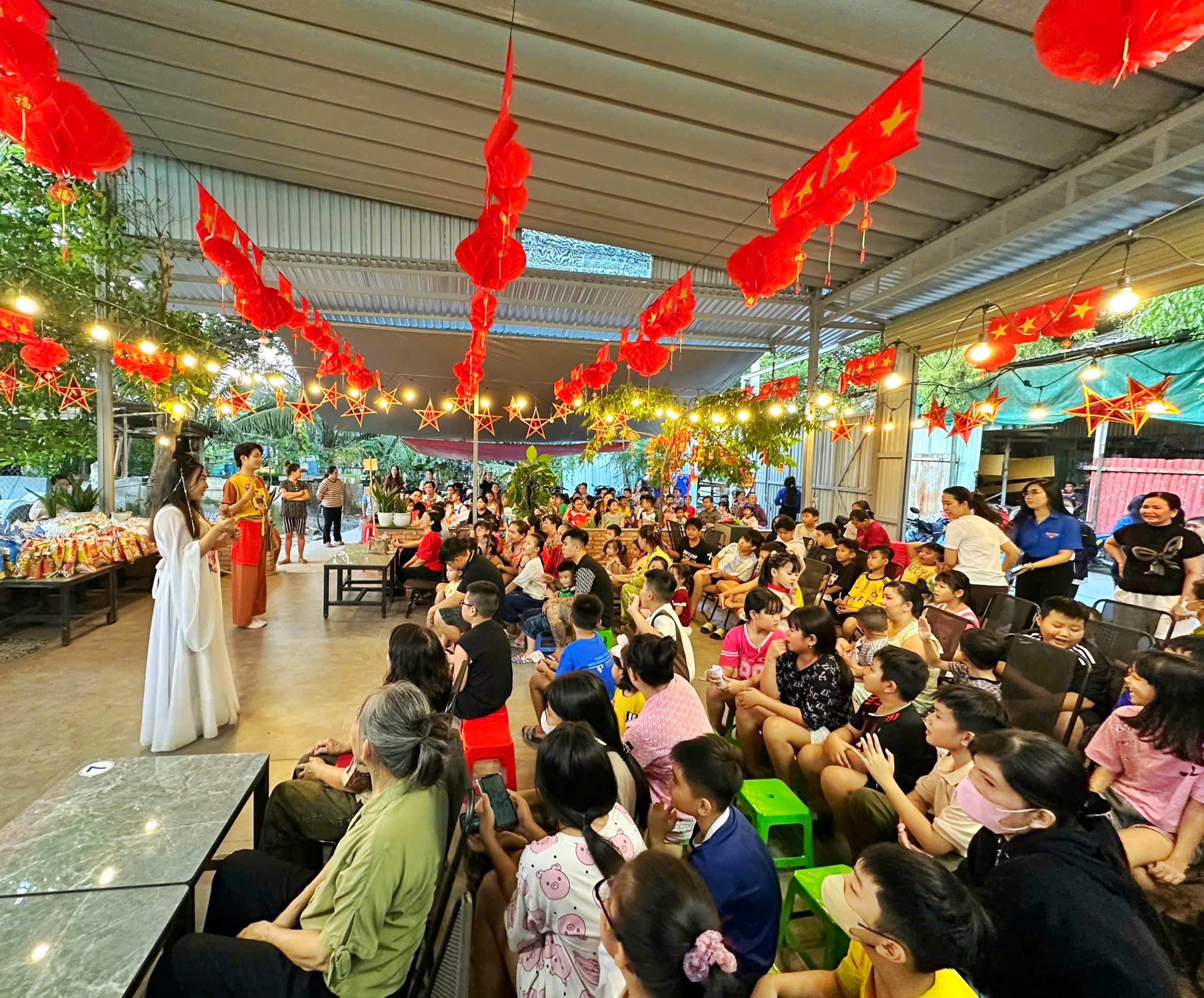 Chương trình diễn ra trong không khí vui tươi, sôi nổi với nhiều tiết mục hấp dẫn như: hoạt náo, đố vui, múa hát cùng chị Hằng và chú Cuội, các tiết mục văn nghệ do chính các em thiếu nhi biểu diễn. Bên cạnh đó, mỗi em nhỏ khi tham gia đều được nhận 01 phần quà Trung thu trị giá 55.000 đồng, cùng một số phần quà bánh kẹo, nước ngọt do Cơ sở may gia công Thiên Kim hỗ trợ.