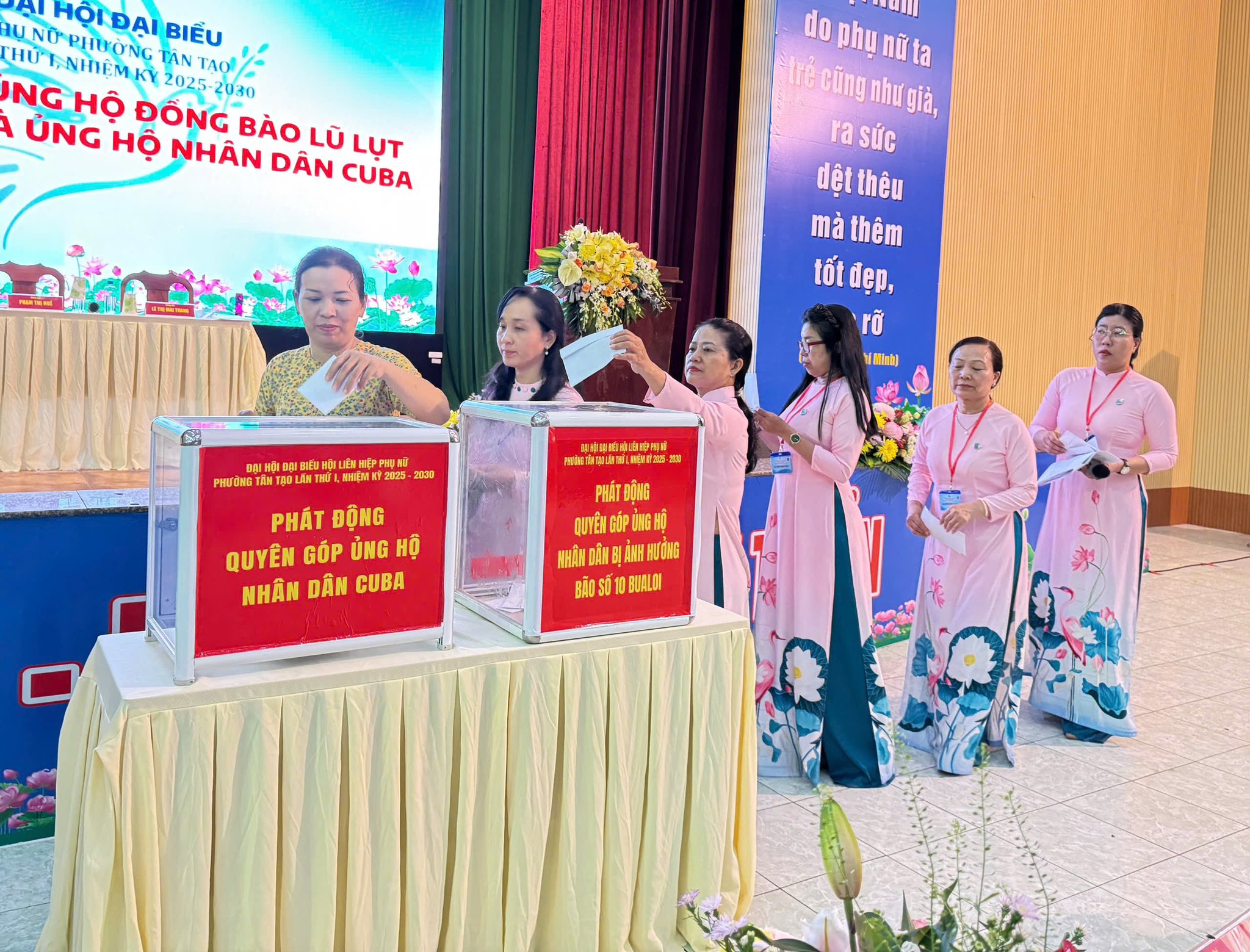 Tại Đại hội, Hội Liên hiệp Phụ nữ phường cũng đã phát động quyên góp ủng hộ đồng bào khu vực Bắc Bộ, Bắc Trung Bộ bị thiệt hại do bão, lũ và nhân dân Cuba anh em, thể hiện tinh thần “Tương thân tương ái - Lá lành đùm lá rách” của phụ nữ Tân Tạo.