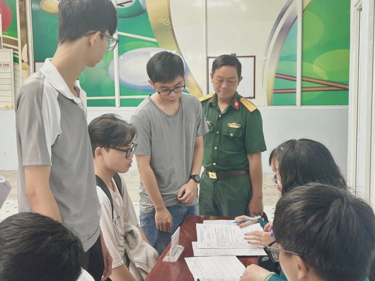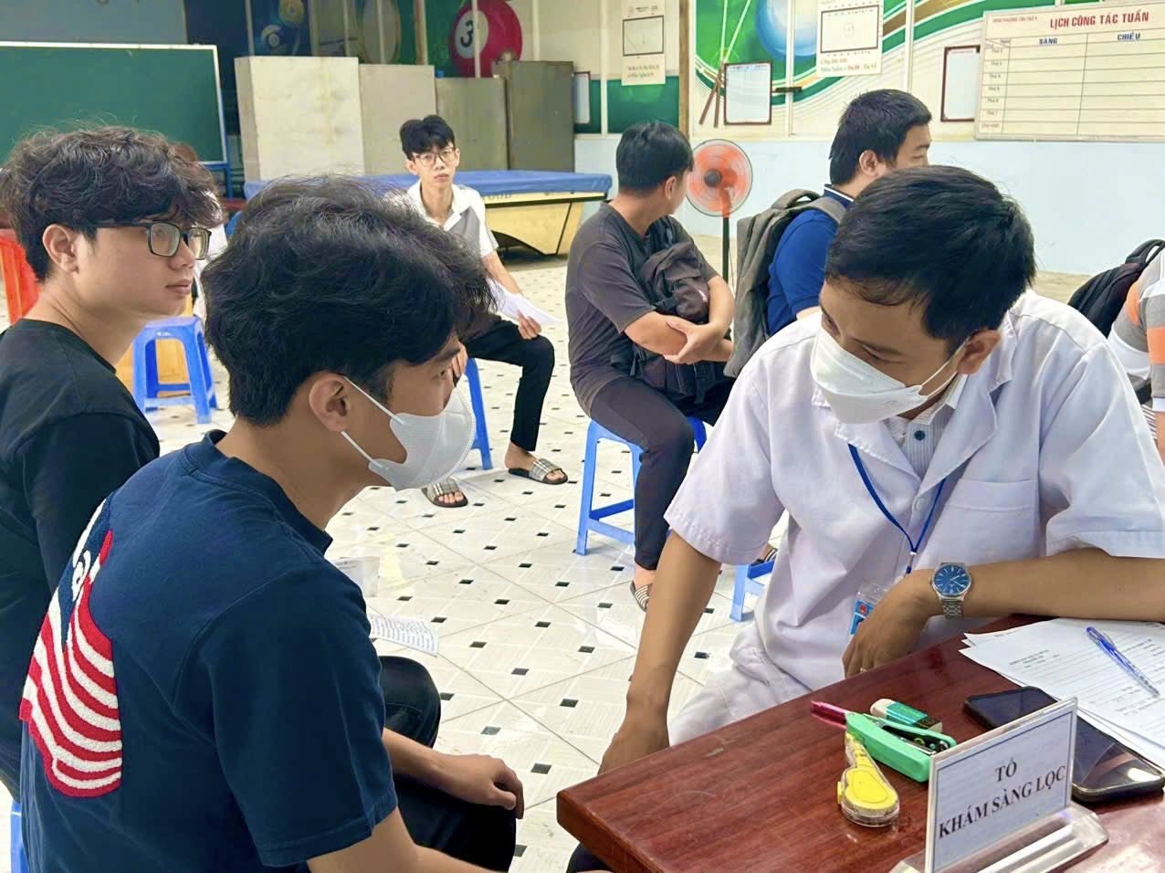 Tại buổi khám, đội ngũ y, bác sĩ Trạm Y tế phường tiến hành kiểm tra sơ bộ sức khỏe cho công dân: khai thác tiền sử bệnh, đo chiều cao, cân nặng, vòng ngực, huyết áp, thị lực và một số bệnh lý khác.