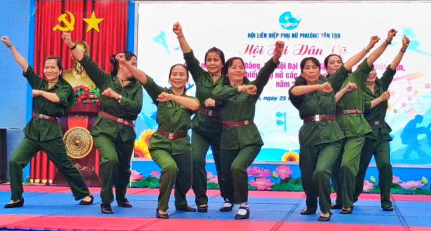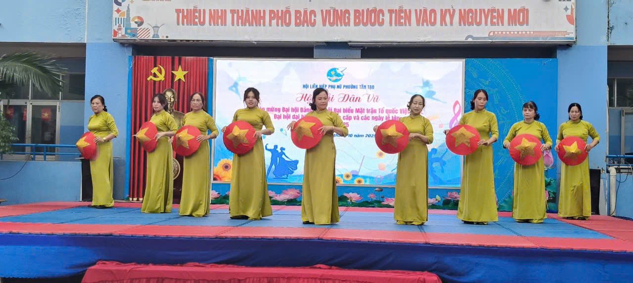 Hòa trong không khí thi đua sôi nổi chào mừng Đại hội Đảng, Đại hội Đại biểu Mặt trận Tổ quốc Việt Nam, Đại hội Đại biểu Phụ nữ các cấp và các ngày lễ lớn năm 2025, sáng ngày 25/10/2025, Hội Liên hiệp Phụ nữ phường Tân Tạo tổ chức Hội thi Dân vũ năm 2025 tại trường Tiểu học Tân Tạo A với sự tham gia hào hứng của đông đảo cán bộ, hội viên và các câu lạc bộ dân vũ trên địa bàn phường.