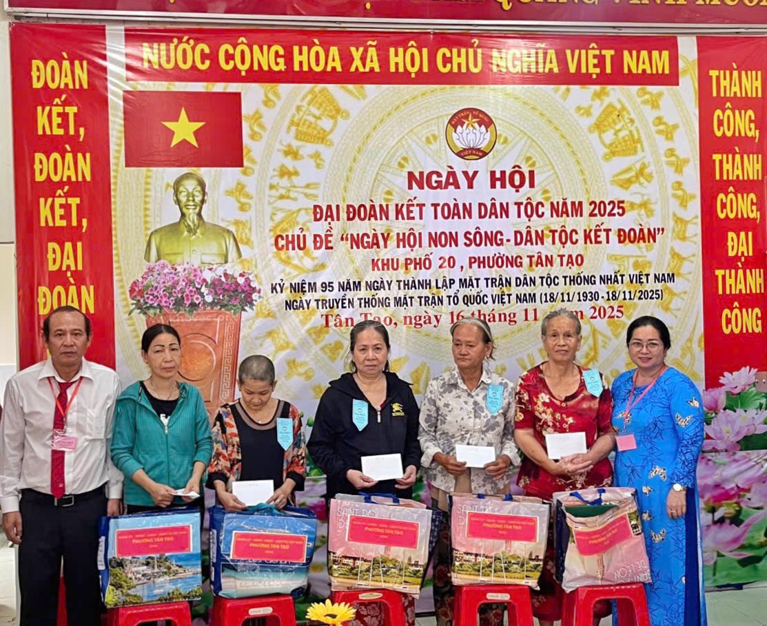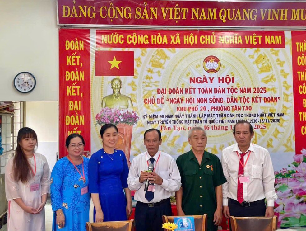 Chiều ngày 16 tháng 11 năm 2025, Khu phố 20 phường Tân Tạo tổ chức Ngày hội Đại đoàn kết toàn dân tộc năm 2025, chào mừng kỷ niệm 95 năm Ngày thành lập Mặt trận Dân tộc thống nhất Việt Nam - Ngày Truyền thống Mặt trận Tổ quốc Việt Nam (18/11/1930 - 18/11/2025).