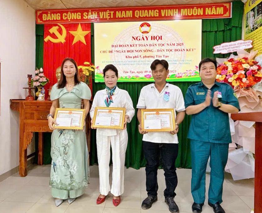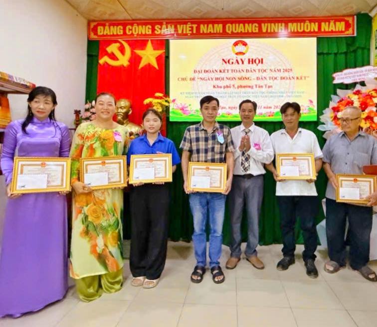Ngày 09/11/2025, Cấp ủy chi bộ, Ban Công tác Mặt trận, các tổ chức chính trị - xã hội và nhân dân khu phố long trọng tổ chức Ngày hội Đại đoàn kết toàn dân tộc năm 2025. Tham dự Ngày hội có đồng chí Nguyễn Tấn An - Ủy viên Ban Thường vụ, Chỉ huy trưởng Ban Chỉ huy Quân sự phường, các đồng chí đại biểu cùng hệ thống chính trị khu phố và đông đảo nhân dân.