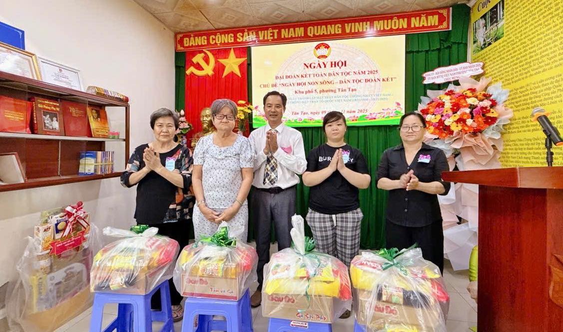 Phát biểu chúc mừng Ngày hội, đồng chí Nguyễn Tấn An khẳng định: Ngày truyền thống Mặt Trận Tổ quốc Việt Nam đã trở thành dịp để nhân dân khu phố phát huy tinh thần đoàn kết, sẻ chia, tổ chức nhiều hoạt động ý nghĩa, giúp đỡ nhau vượt qua khó khăn trong cuộc sống; đồng thời nghi nhận và biểu dương tinh thần trách nhiệm, sự đóng góp tích cực của tập thể Ban Công tác Mặt trận và nhân dân khu phố 5 trong năm qua; đặc biệt là các hoạt động xây dựng cộng đồng, chăm lo đời sống người dân, vệ sinh môi trường và giữ gìn an ninh trật tự. Khu phố cần tiếp tục tuyên truyền sâu rộng trong nhân dân về chủ trương, nghị quyết của Đảng, chính sách, pháp luật của Nhà nước, nhất là kết quả bước đầu trong triển khai nội dung công việc tại khu phố với mô hình chính quyền địa phương hai cấp. Đồng thời, đồng chí khẳng định tầm quan trọng của việc tiếp tục đẩy mạnh các phong trào thi đua yêu nước tại khu phố, như: xây dựng khu dân cư “Sạch – Xanh – Thân thiện môi trường”, “Đoàn kết – Nghĩa tình – Tự quản”; phát triển các công trình “Thành phố muôn sắc hoa” gắn với các hoạt động chào mừng Đại hội Đảng toàn quốc lần thứ XIV; xây dựng đô thị văn minh, khu dân cư nghĩa tình. Đời sống văn hóa cơ sở là trách nhiệm thường xuyên của mỗi hộ gia đình, mỗi người dân trong cộng đồng và bày tỏ tin tưởng vào sự đoàn kết, gắn bó của nhân dân Khu phố 5, tiếp tục góp phần xây dựng địa phương ngày càng phát triển.
