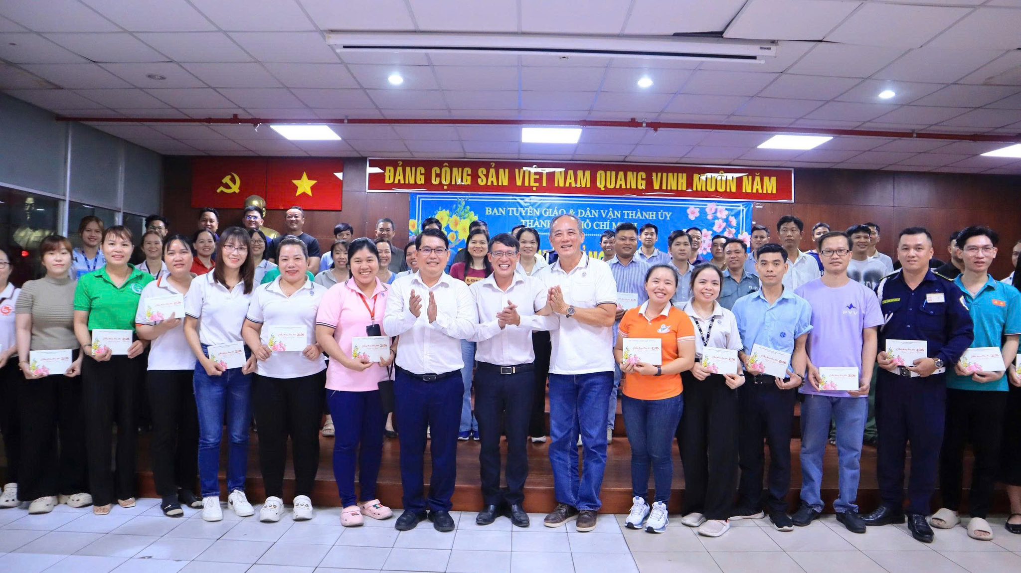 Dịp này, Ban Tuyên giáo và Dân vận Thành ủy TP.HCM phối hợp Đảng ủy phường Tân Tạo trao 243 suất quà Tết trị giá 1.000.000 đồng/suất nhằm động viên tinh thần cán bộ, đảng viên Đảng bộ Công ty TNHH Pouyuen Việt Nam.