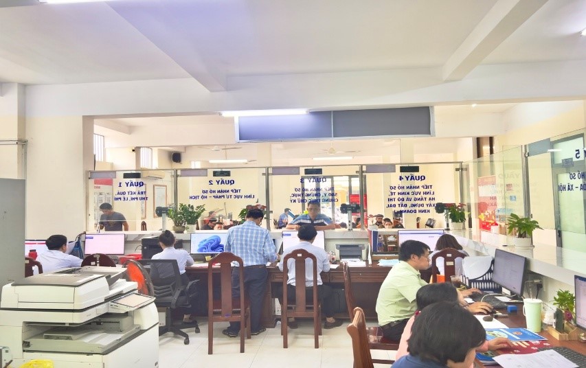 Ảnh: Người dân đến Trung tâm Phục vụ hành chính công phường thực hiện thủ tục hành chính