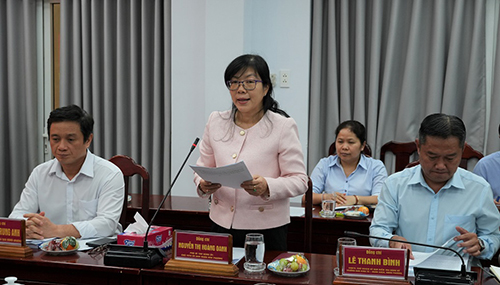 Bà Trương Thanh Nga, Phó Trưởng Ban Tuyên giáo và Dân vận Thành ủy, Tổ phó Tổ công tác phát biểu tại buổi làm việc