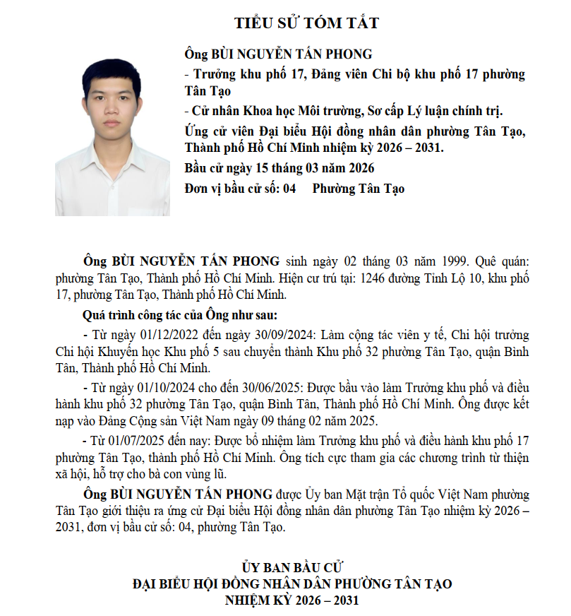 ỦY BAN NHÂN DÂN PHƯỜNG TÂN TẠO, THÀNH PHỐ HỒ CHÍ MINH