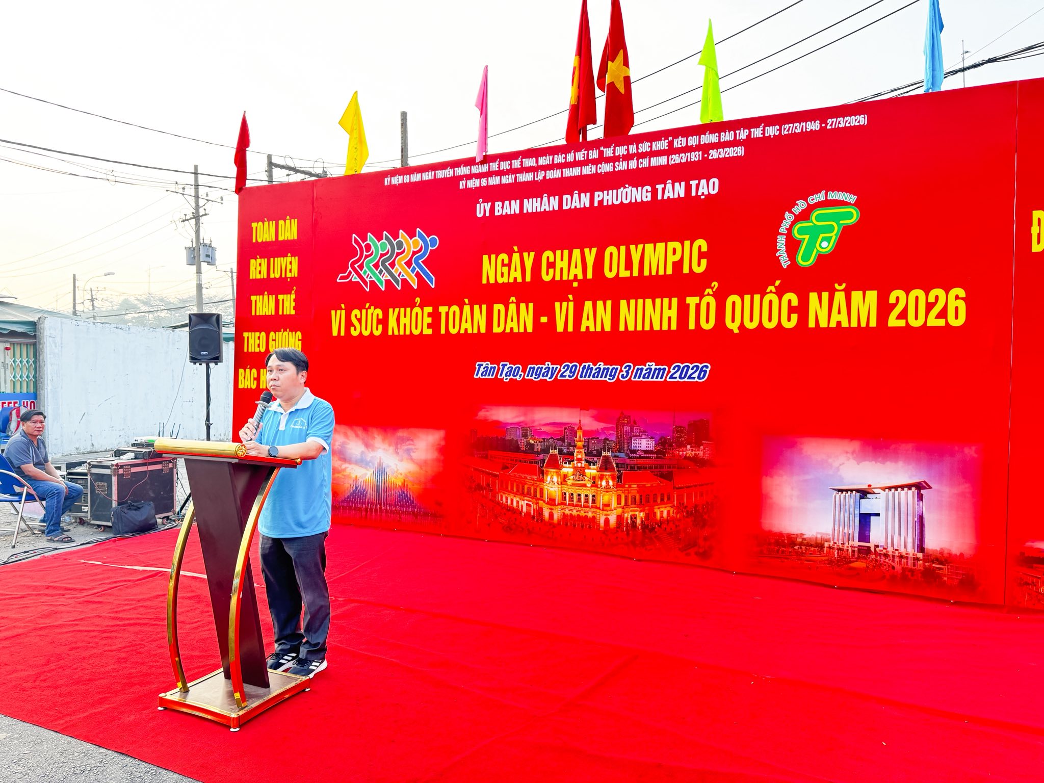 Sáng 29/3, UBND phường tổ chức Ngày chạy Olympic 2026 "Vì sức khỏe toàn dân - Vì an ninh Tổ quốc", tham dự có các đồng chí: Nguyễn Thị Hoàng Oanh, Phó Bí thư Đảng ủy, Chủ tịch UBND phường; Lê Thanh Bình, Ủy viên Ban Thường vụ, Chủ nhiệm UBKT Đảng ủy phường; Lê Minh Hiếu, Ủy viên Ban Thường vụ, Phó Chủ tịch UBND phường; Phan Thị Diễm, Trưởng Phòng Văn hóa - Xã hội phường cùng các đồng chí Thường trực HĐND, UBND và hơn 500 người là lãnh đạo, công chức cơ quan chuyên môn giúp việc Đảng ủy; Ủy ban Mặt trận Tổ quốc Việt Nam và các tổ chức chính trị - xã hội phường; Đơn vị sự nghiệp, lực lượng vũ trang phường.