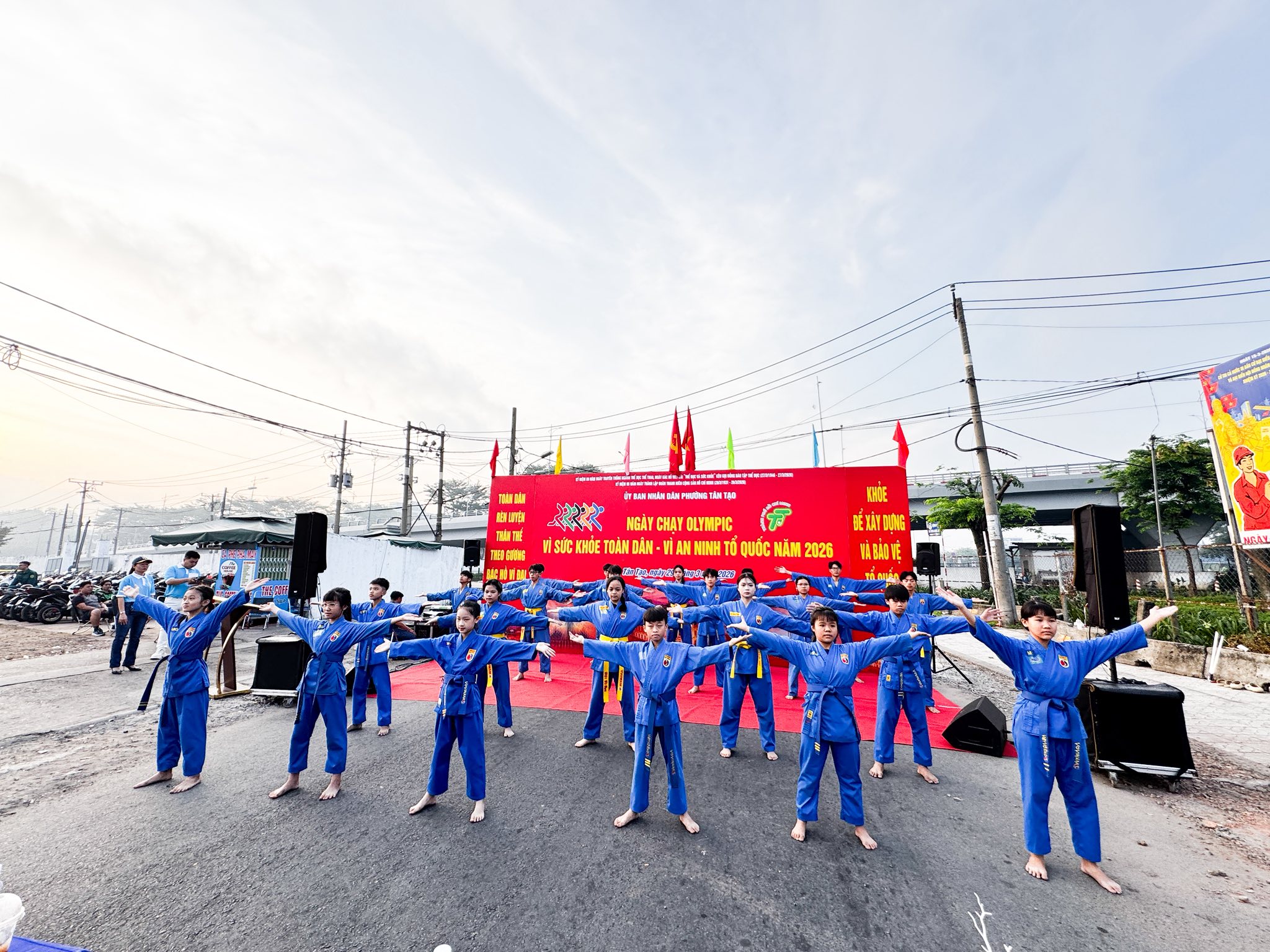 Ngay sau Lễ Khai mạc, các đại biểu và Nhân dân đã tham gia chạy hưởng ứng trên tuyến đường số 54, 57, 52, 53D nhằm lan tỏa thông điệp “Vì sức khỏe toàn dân - Vì an ninh Tổ quốc" góp phần đưa phong trào thể dục thể thao ngày càng phát triển sâu rộng trong cộng đồng.