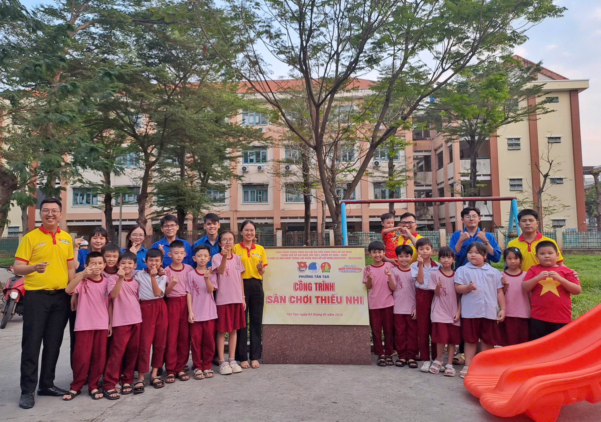 Sáng ngày 03/01/2026, Đoàn phường - Hội đồng Đội tổ chức lễ khánh thành khu vui chơi mới tại Công viên sau lưng trường TH Bình Tân, khu phố 39, phường Tân Tạo trị giá 40.000.000 đồng.