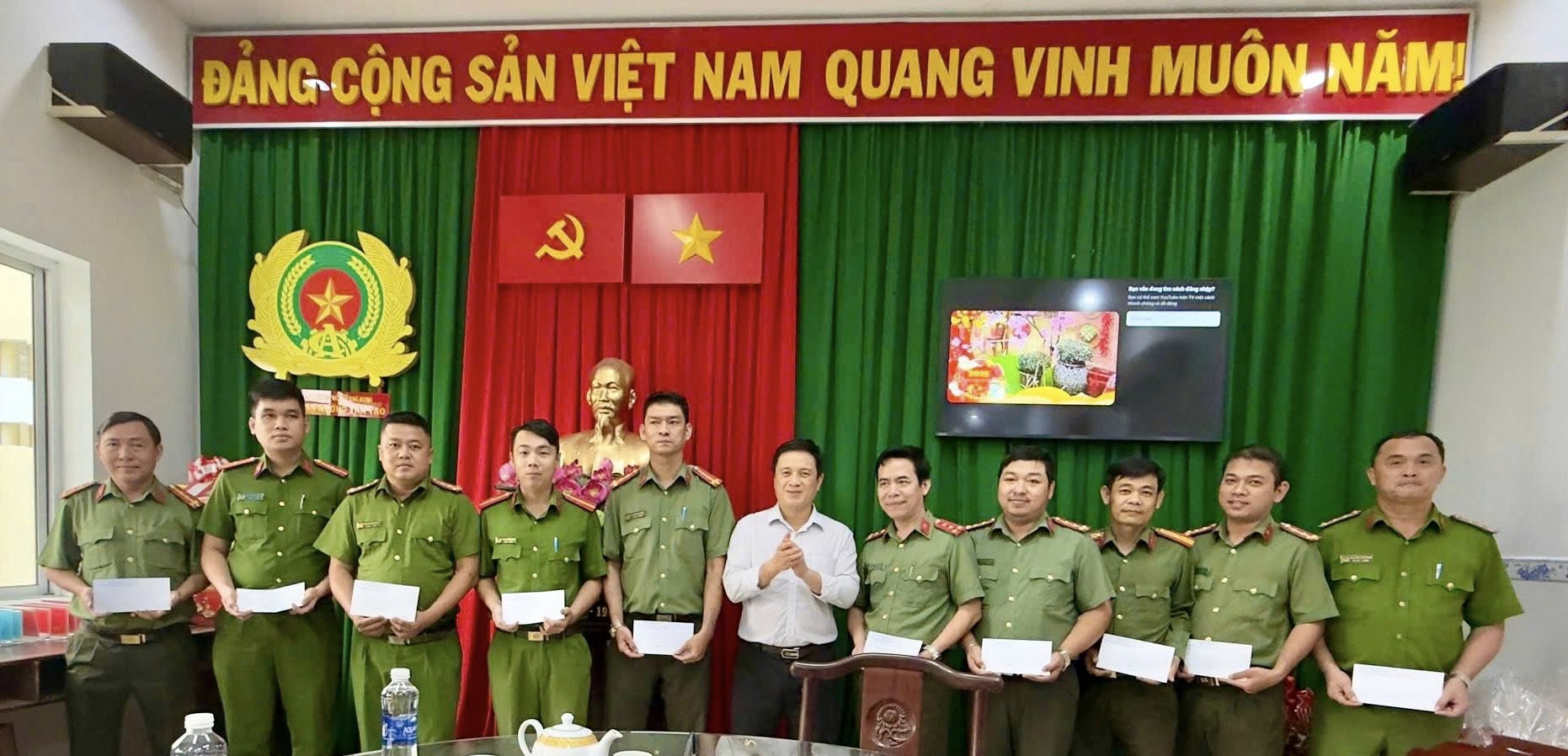 Nhân dịp này, đồng chí Nguyễn Trung Anh - Bí thư Đảng ủy, Chủ tịch HĐND phường đã trao quà Tết tặng cán bộ, chiến sĩ Công an, Quân sự, lực lượng An ninh cơ sở và hệ thống chính trị các khu phố 14, 17, 18, 22, 23, 24.