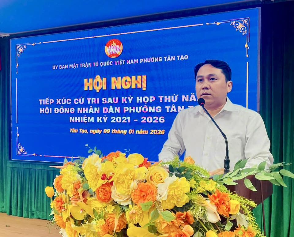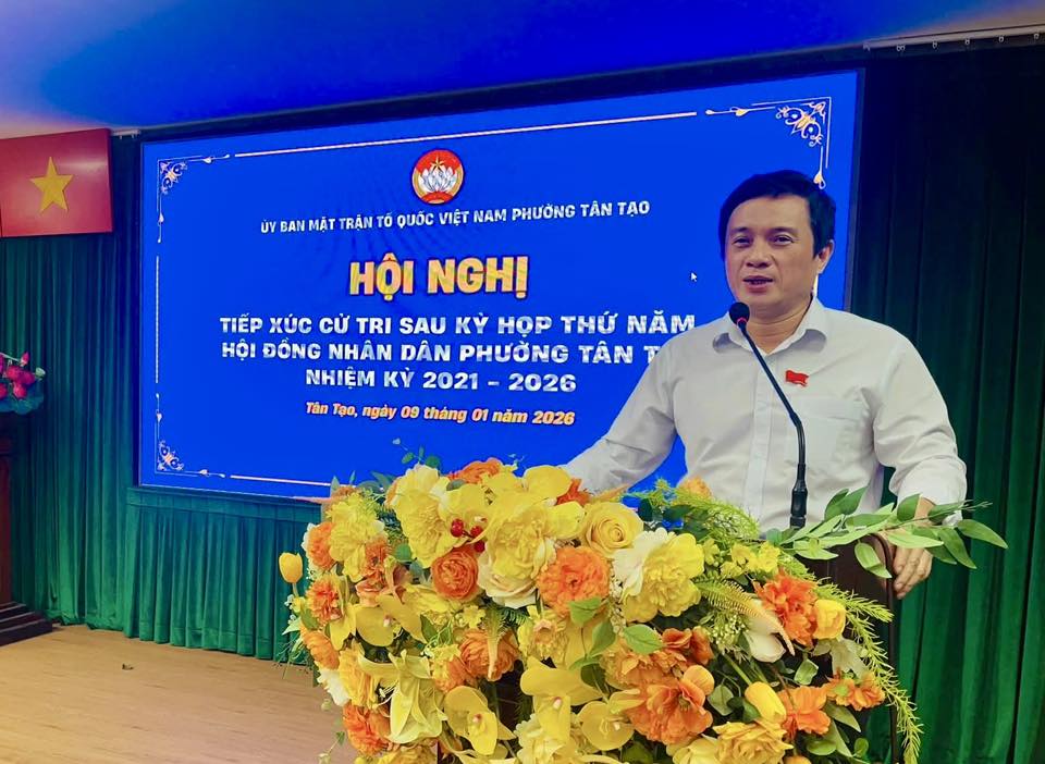 Sáng ngày 09/01/2026, Ủy ban MTTQ Việt Nam phường Tân Tạo tổ chức Hội nghị tiếp xúc cử tri sau kỳ họp thứ năm Hội đồng nhân dân phường Tân Tạo, nhiệm kỳ 2021 – 2026.