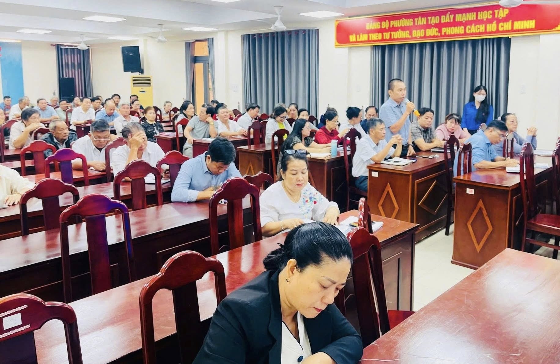 Tại Hội nghị, cử tri được nghe báo cáo kết quả kỳ họp thứ năm Hội đồng nhân dân phường nhiệm kỳ 2021 – 2026 và báo cáo kết quả giải quyết ý kiến, kiến nghị của cử tri trước kỳ họp thứ năm Hội đồng nhân dân phường nhiệm kỳ 2021 - 2026. Hội nghị đã ghi nhận 07 ý kiến phát biểu của các cử tri liên quan đến các vấn đề vệ sinh môi trường, trật tự lòng lề đường, xây dựng, xử lý rác thải,…
