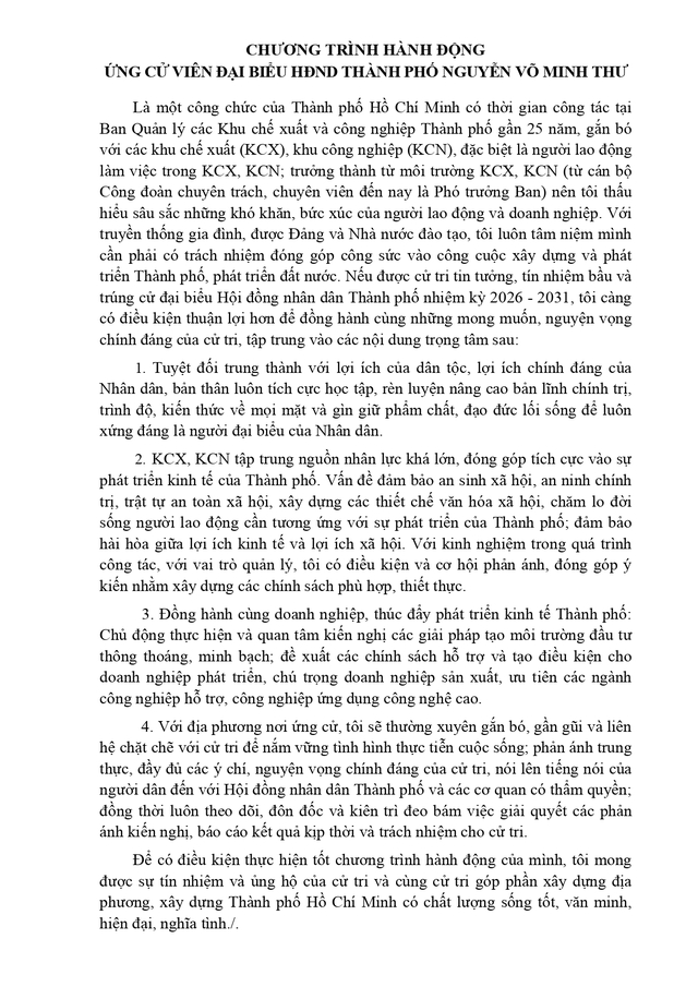 Tóm tắt tiểu sử bà Nguyễn Võ Minh Thư ứng cử Đại biểu Hội đồng nhân dân TP. Hồ Chí Minh Khóa XI