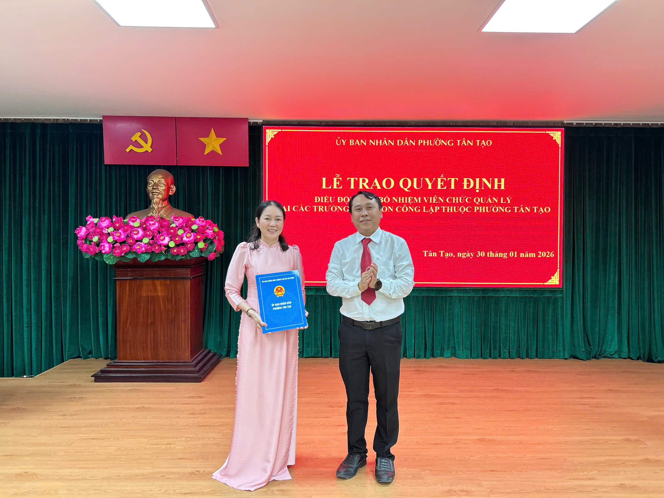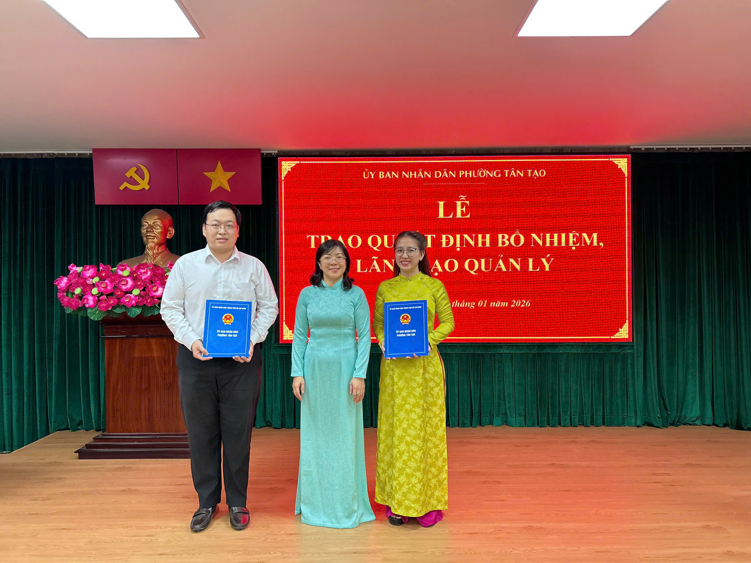Sáng 30/1, tại Hội trường Ủy ban nhân dân phường, Ủy ban nhân dân phường Tân Tạo tổ chức lễ trao quyết định bổ nhiệm cán bộ.